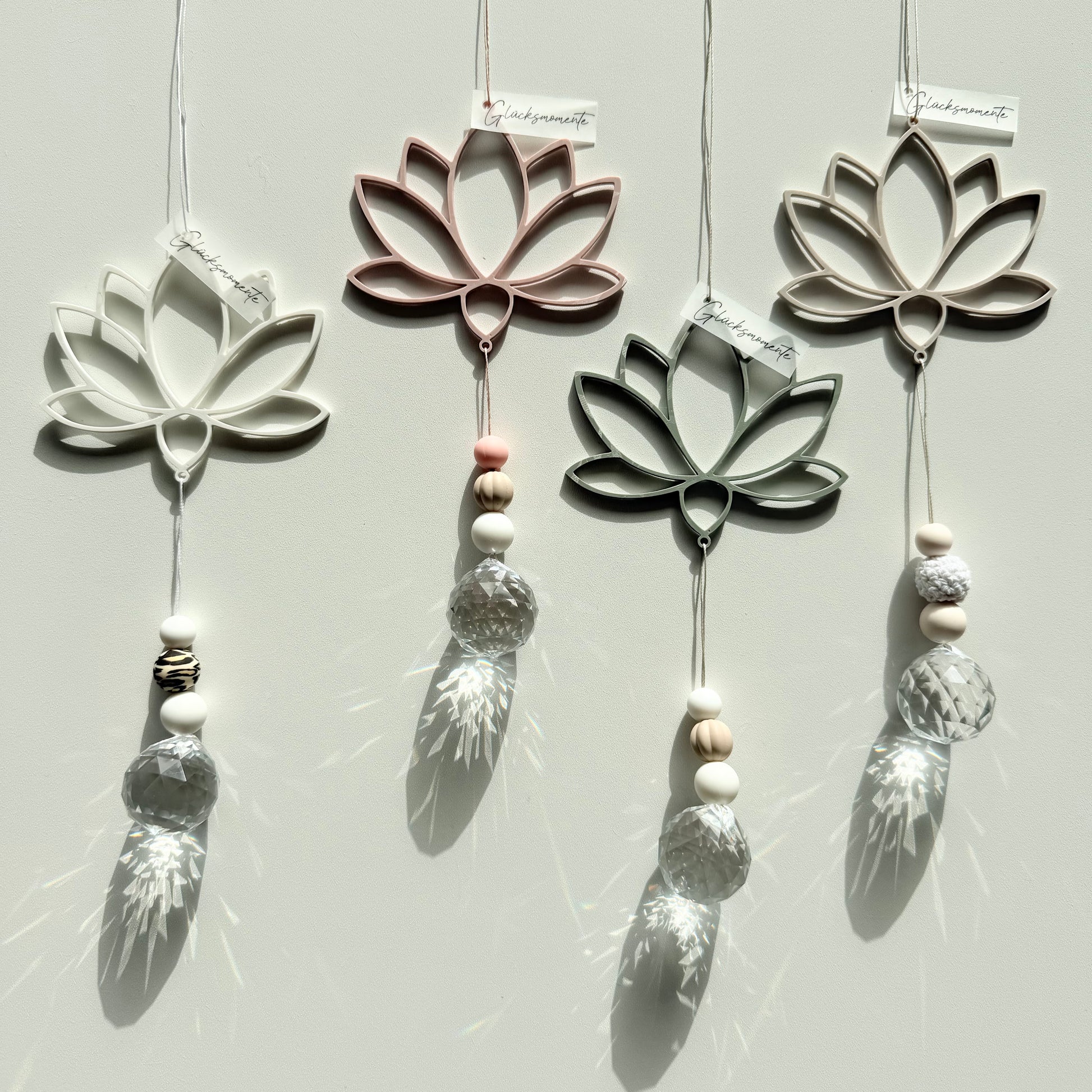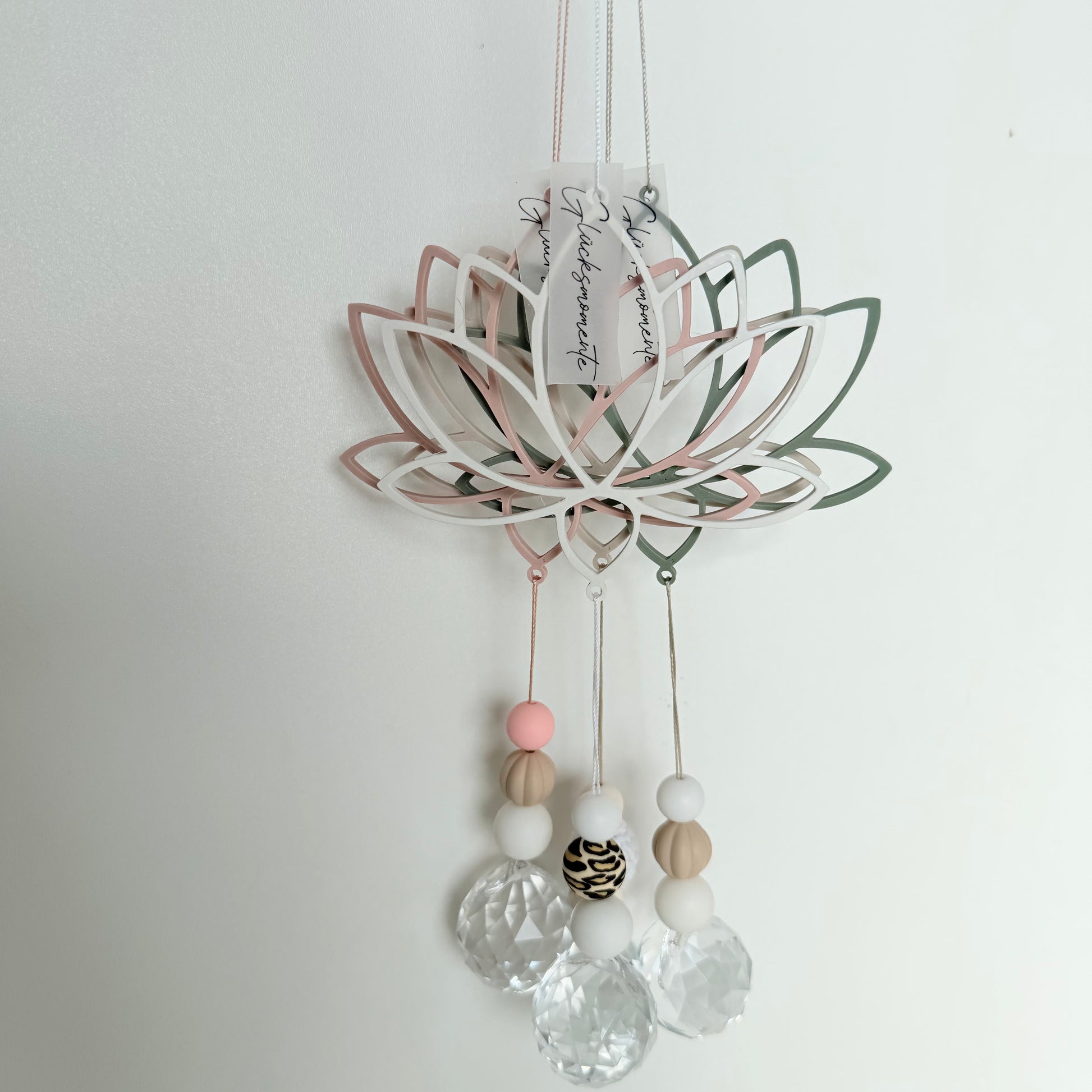 Gedruckte Lotusblüte ca. 10cm, Abmaße ohne Perlen und Kristall gemessen. Die Perlen sind nicht frei wählbar und werden nach belieben farblich zusammengestellt.