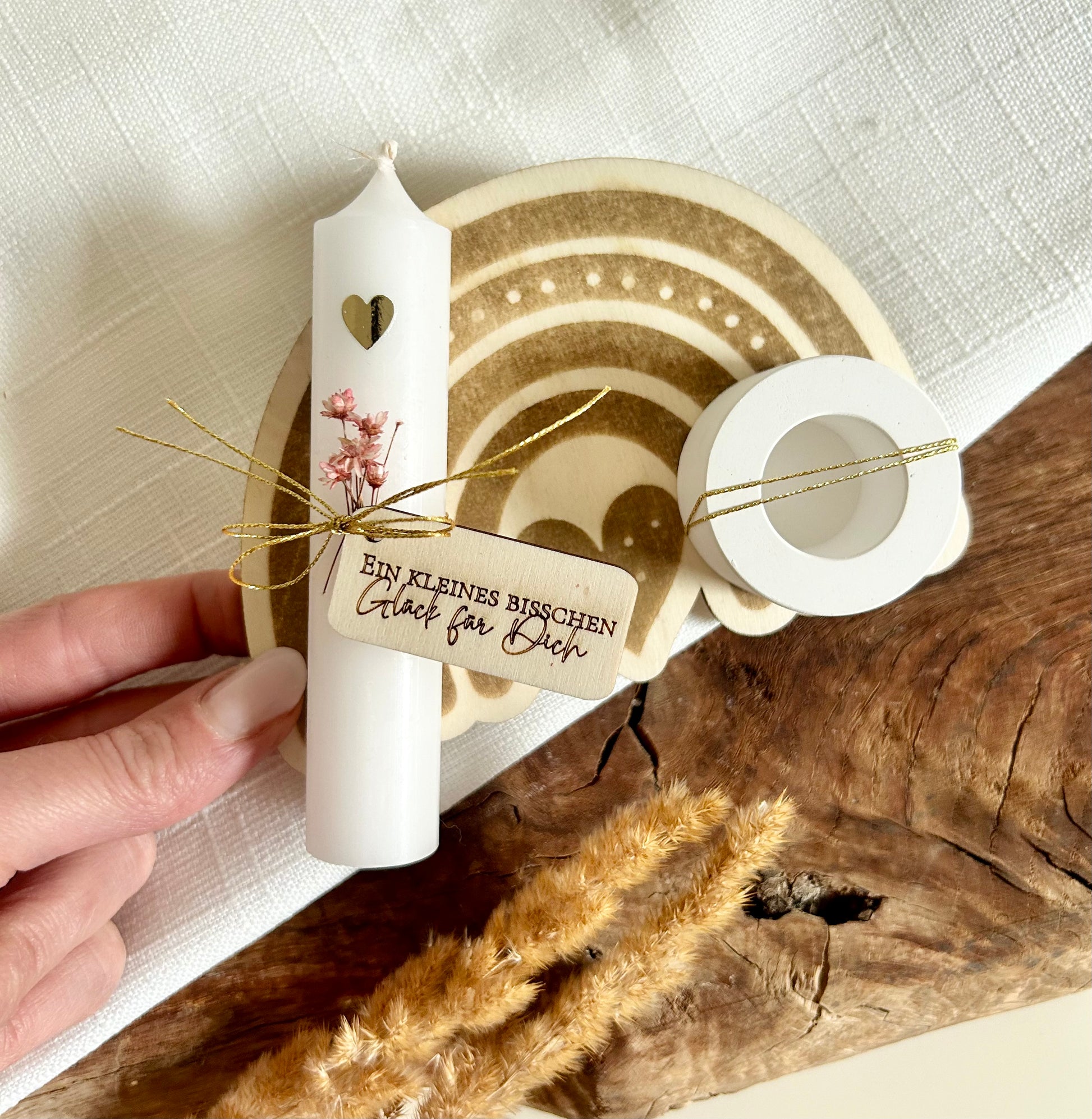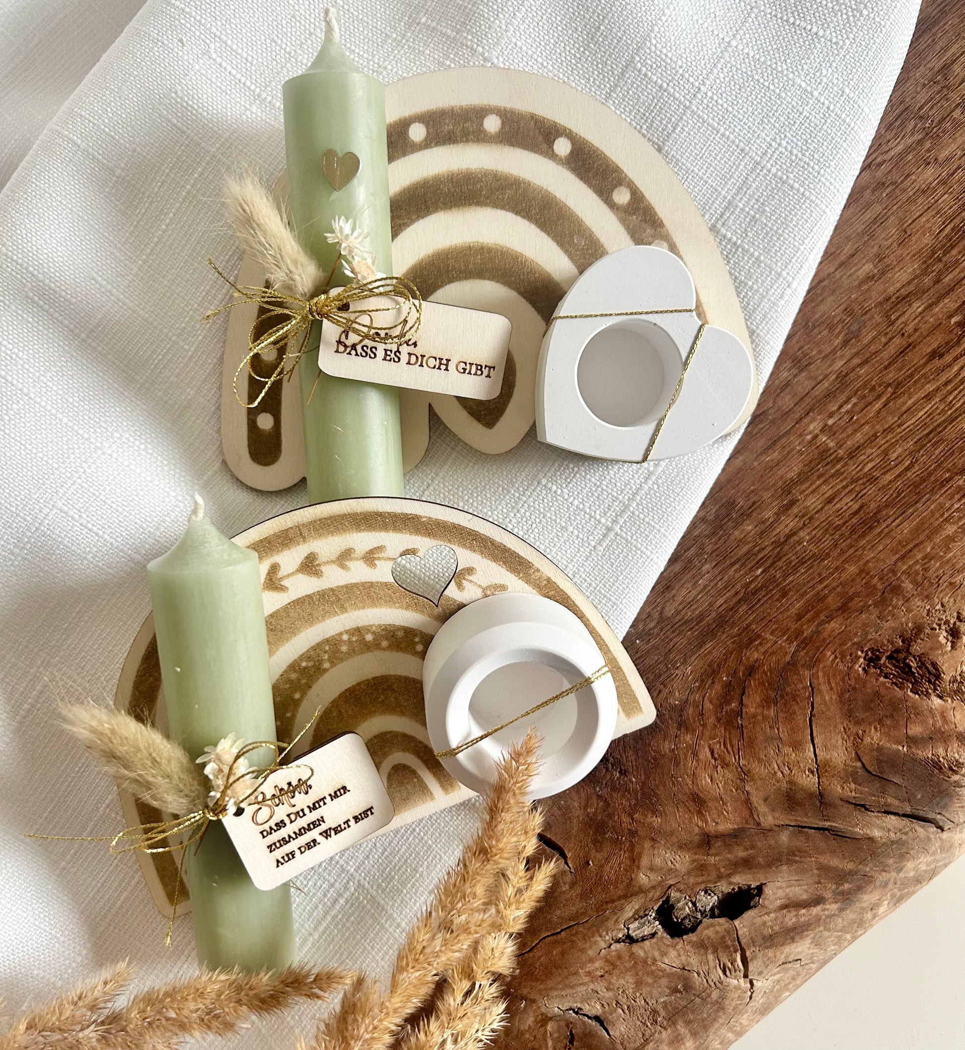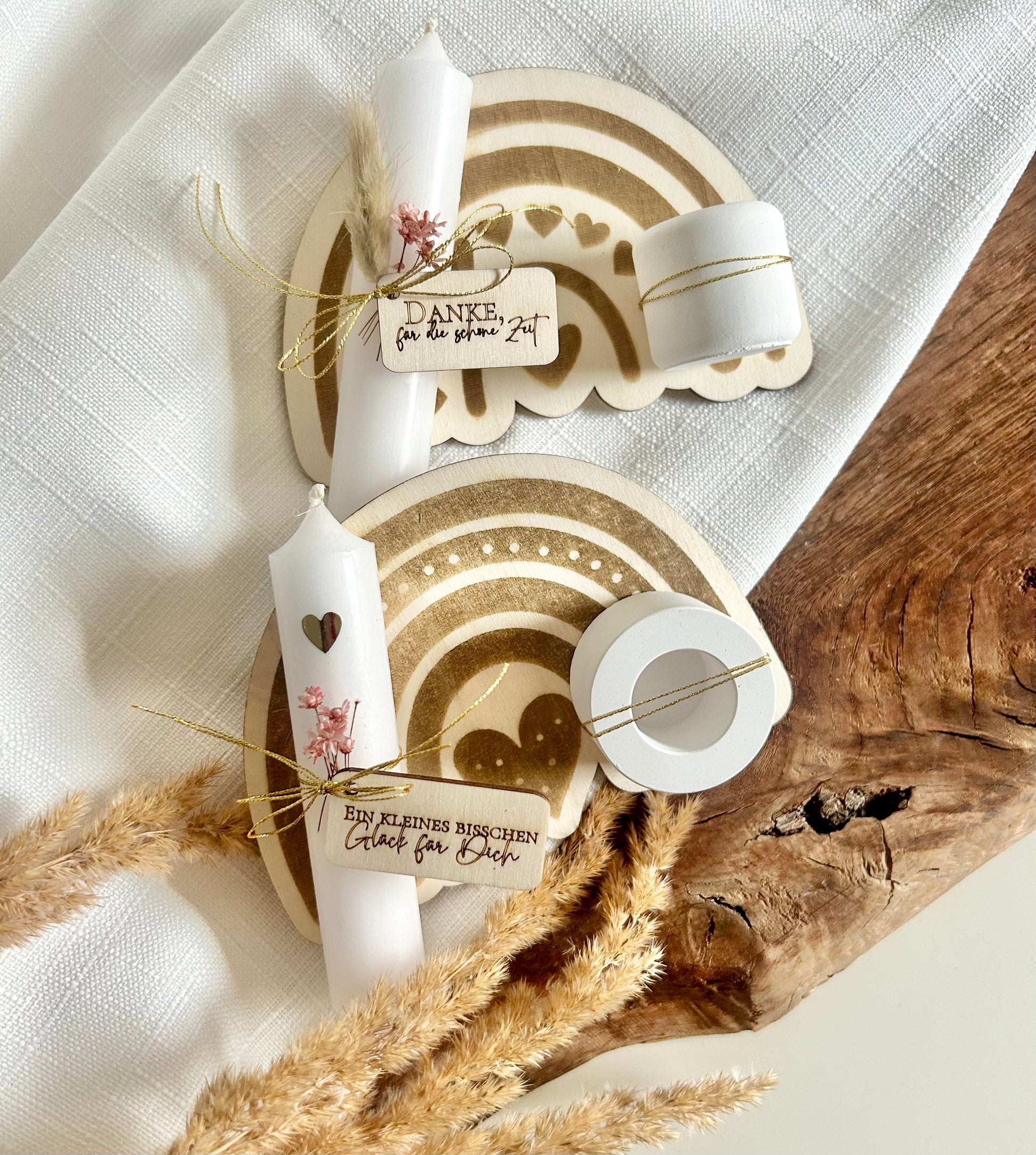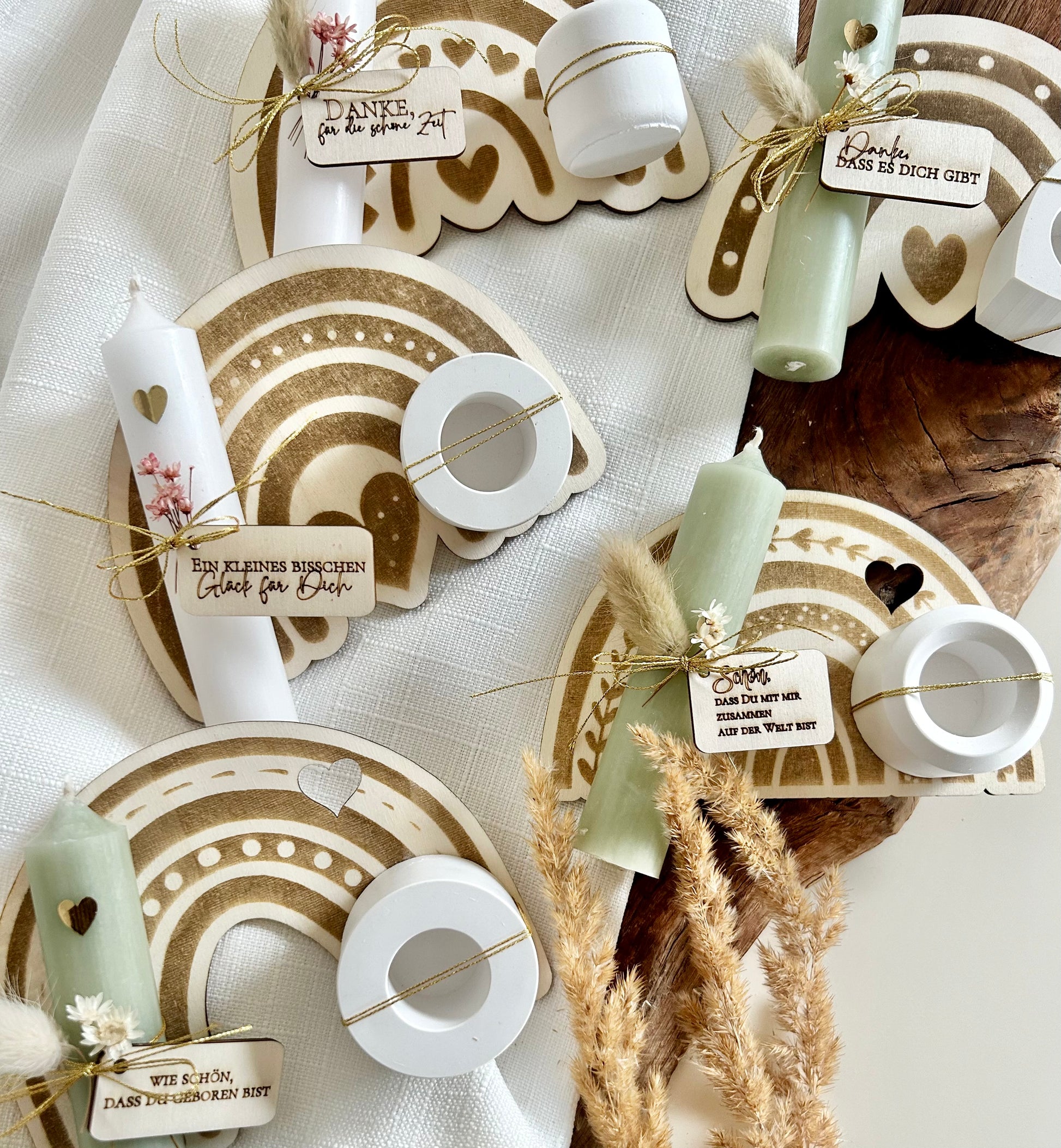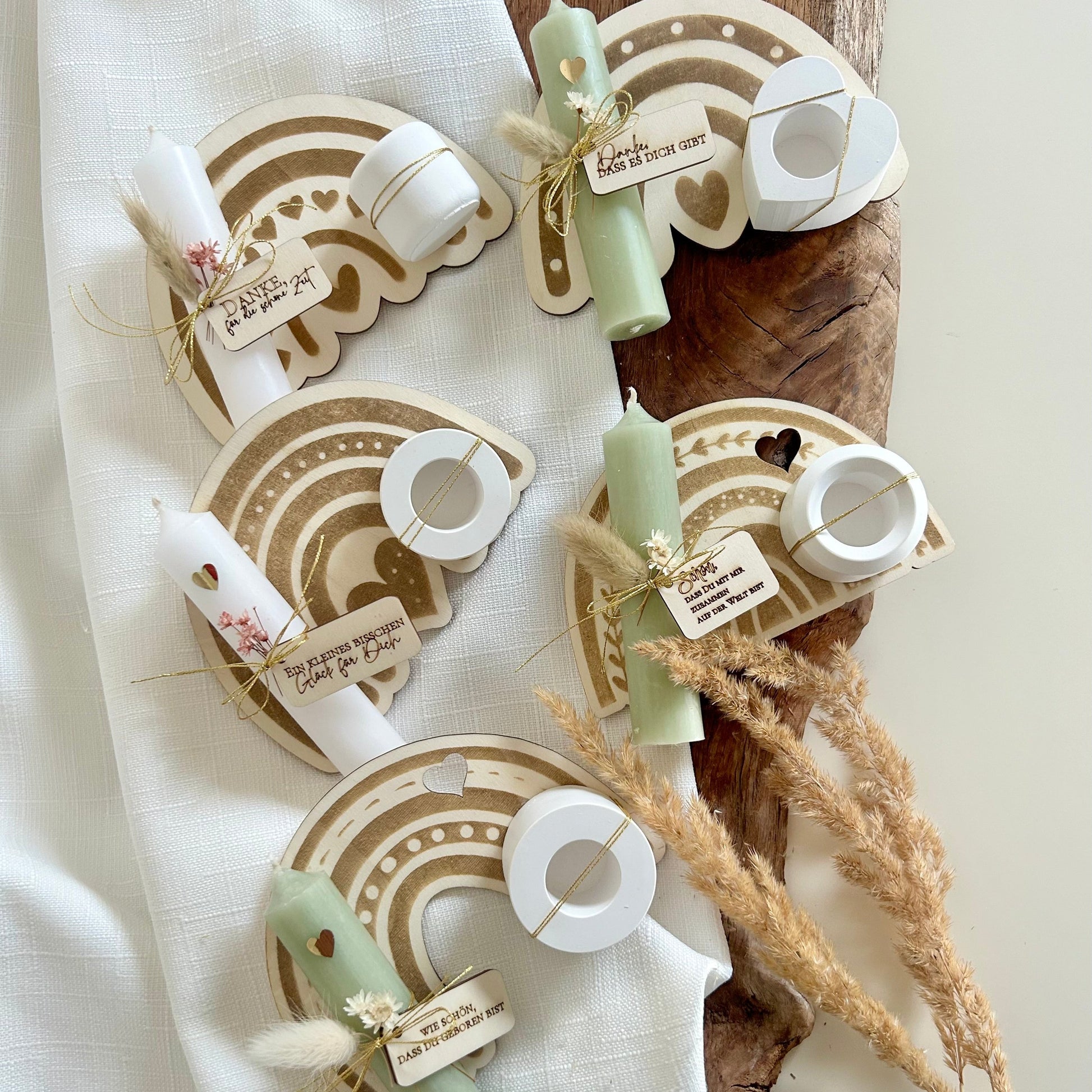 Regenbogen Kerzenhalter Holzbrettchen mit Anhängern