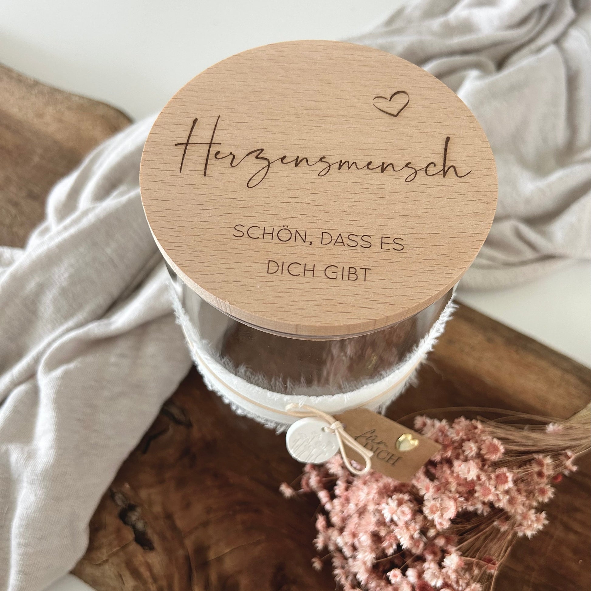 Graviertes Vorratsglas "Herzensmensch SCHÖN, DASS ES DICH GIBT".