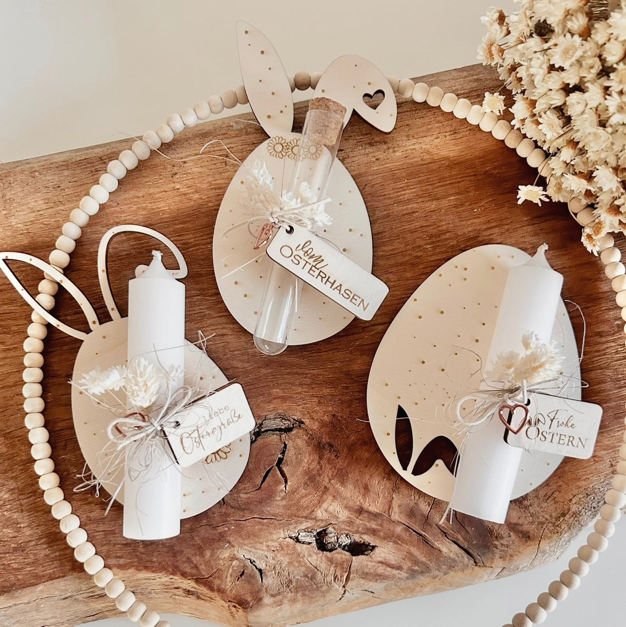 Wunscherfüller / Kerzenhalterbrett Osterhase, Osterei